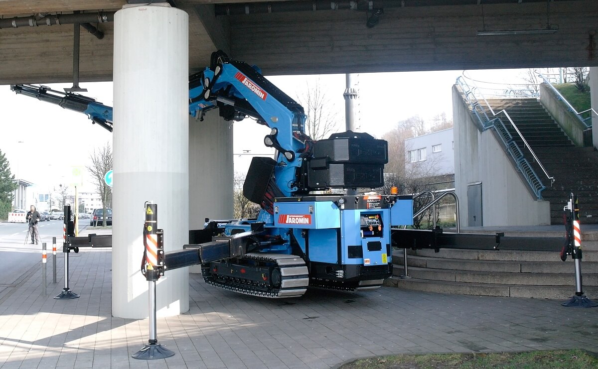 Der JF545 konnte bei Brückenarbeiten in Oberhausen sein ganzes Können zeigen. Mit der intelligenten Abstützung war auch dieser Auftrag schnell und fehlerfrei abgewickelt.